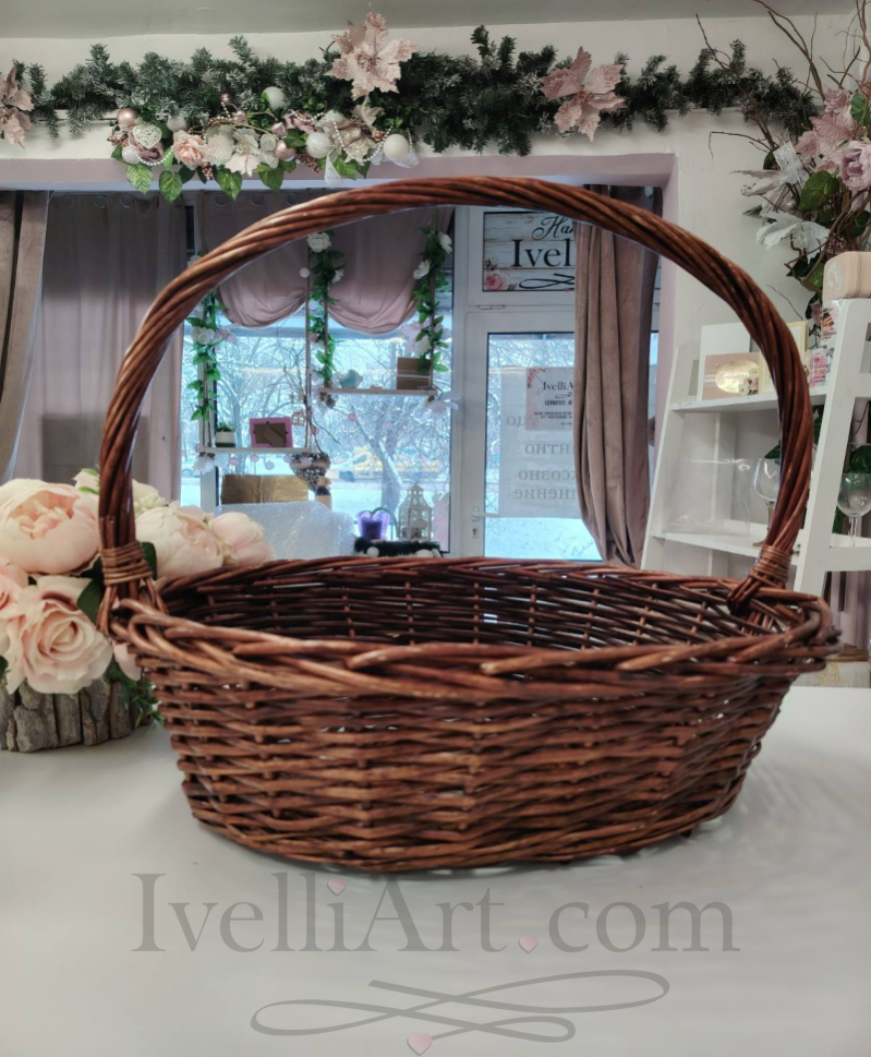Голяма кафява ратанова кошница Л размер, диаметър 40 см. Много здрава с елипсовидна форма.