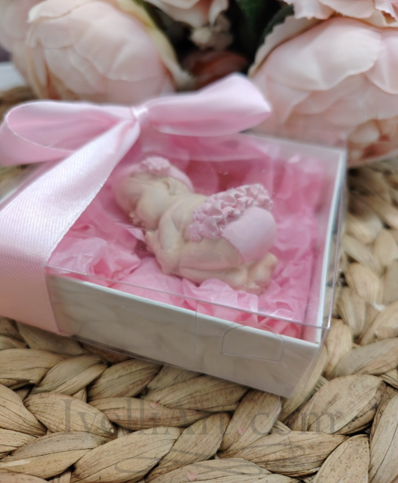 Спящо бебе подарък за гости в розово