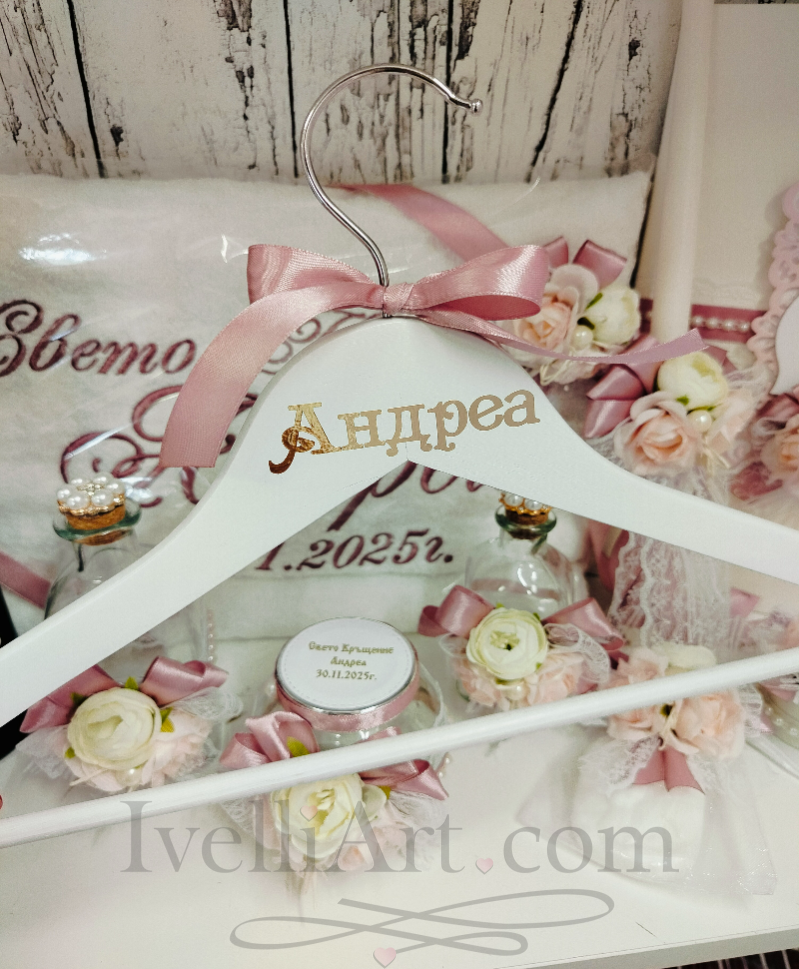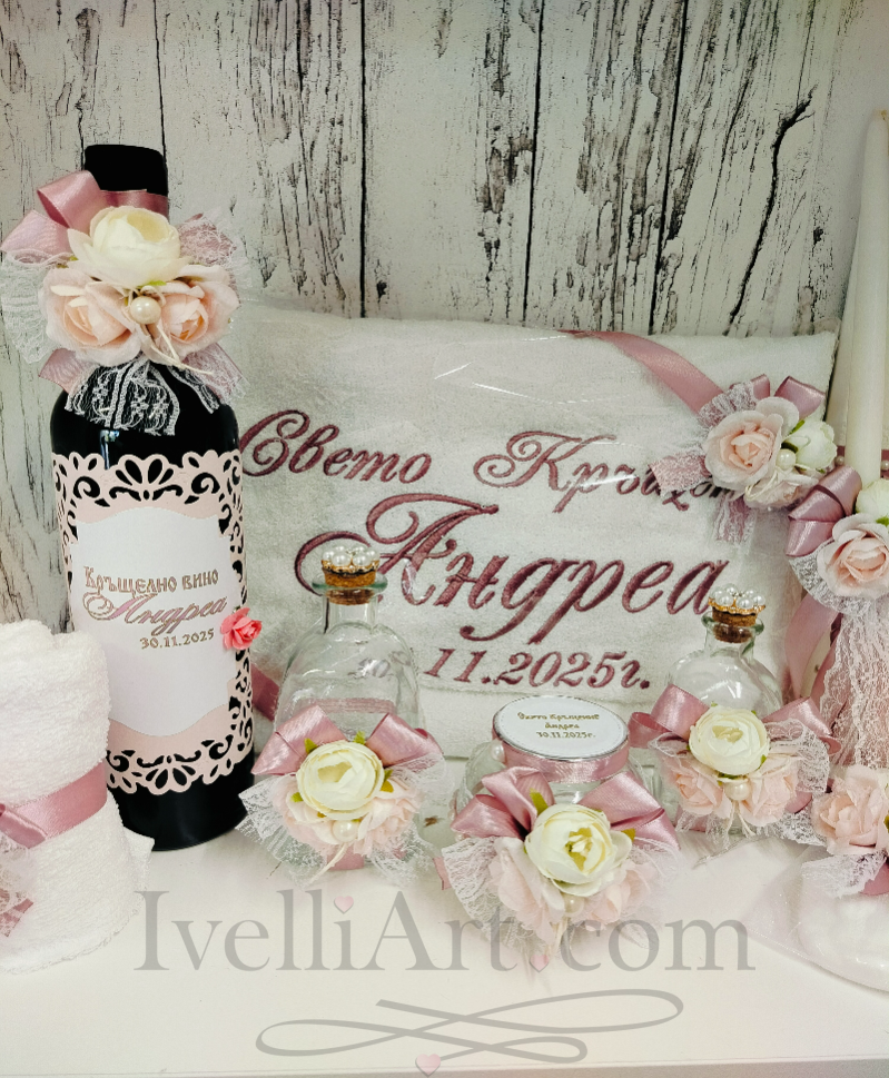 Кръщенето е един от най-светлите и вълнуващи празници в живота на всяко семейство. С този луксозен комплект за кръщене за момиче от IvelliArt ще създадете нежна и елегантна атмосфера, която ще остане красив спомен завинаги.