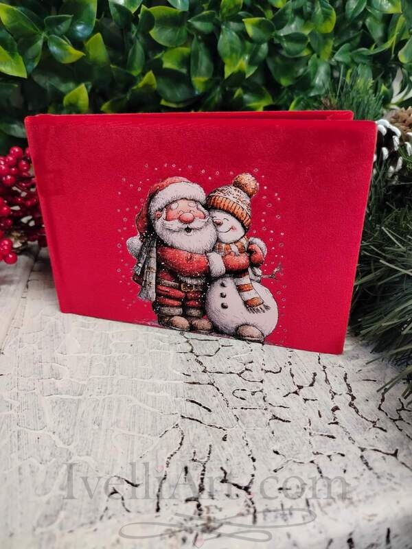 Размер на албума 16/11см; 10 страници твърд картон за снимки 10/15см ; самозалепващо покритие на всяка страница ; израобтен от кадифен велур с празнична щампа