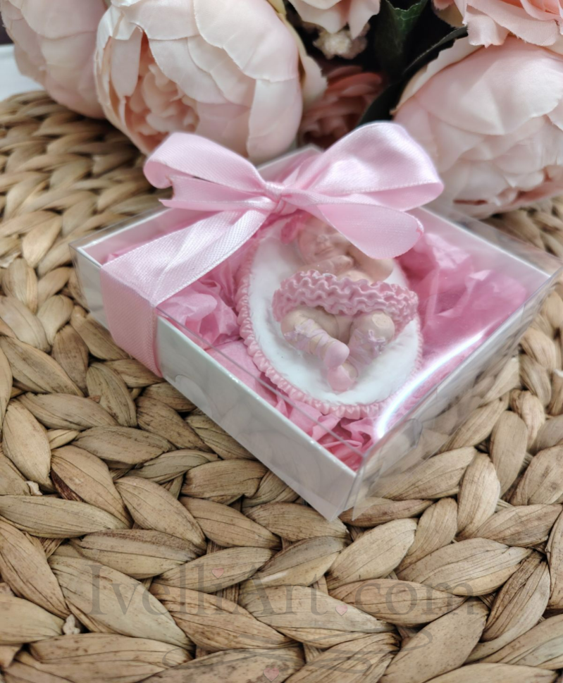 Този персонализиран подарък за момиченце е чудесен избор както за подарък за гости за кръщене, погача или рожден ден. Нежният дизайн на бебе балерина в розово носи усещане за чистота, любов и приказна атмосфера.