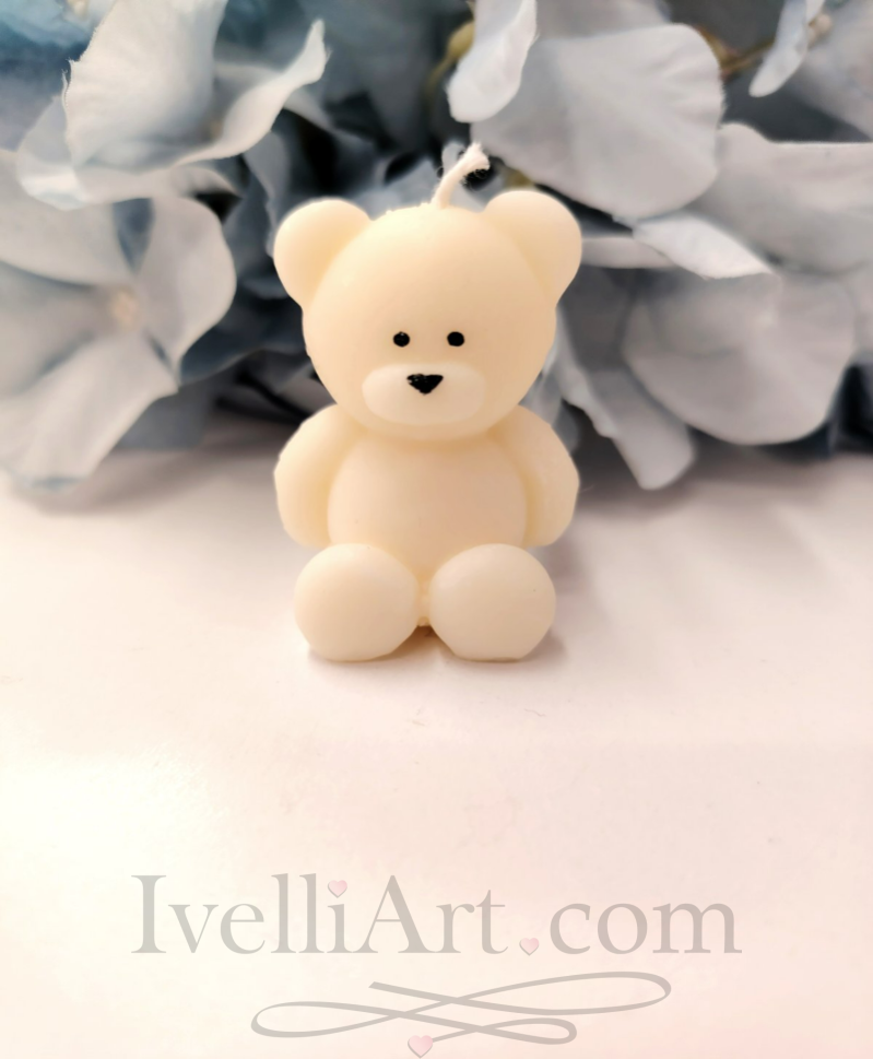 Формата на малкото мече символизира детска невинност, топлина и обич, превръщайки свещта в мил спомен от специалния повод. Всяка свещ Мече от IvelliArt се изработва ръчно с внимание към детайла и може да бъде поднесена в подходяща опаковка с панделка по избор.