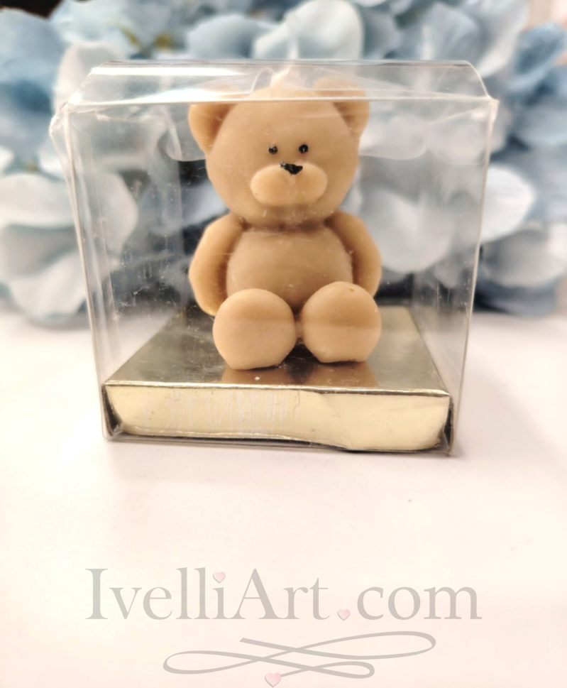 Нежна малка свещ Мече от натурален соев восък – стилен и ароматен подарък за гости на кръщене, погача, рожден ден или бебешки празник. Ръчна изработка за IvelliArt. Направете празника си още по-нежен и запомянщ се с красив персонализиран подарък, поднесен според вашите желания.